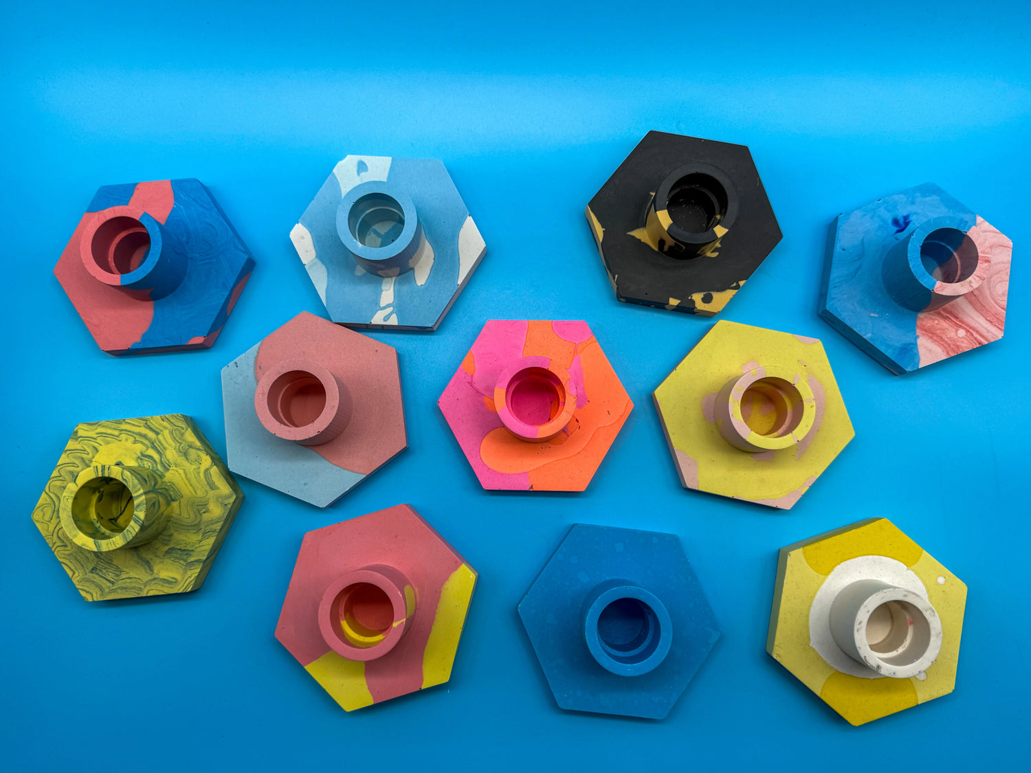 Jeder Kerzenständer wird von uns selbst per Hand kreiert und ist dadurch ein limitiertes Unikat! Hergestellt werden die Kerzenständer aus Jesmonite.