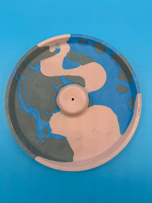 Räucherstäbchenhalter Rund Marble Look Rosa - Handgefertigt aus Jesmonite | Designer Deko