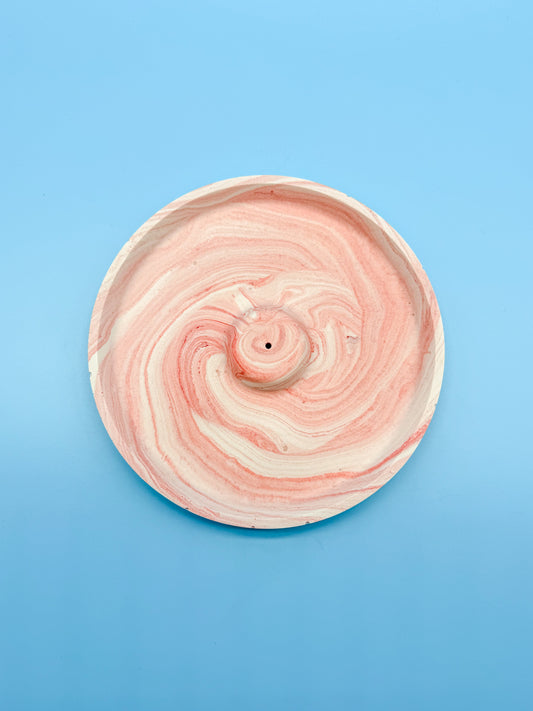 Räucherstäbchenhalter Rund Rosa Marble Look - Handgemachte Designer Deko