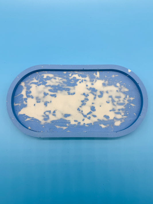 Ablage Oval Blau Weiß Splatter - Handgemacht Designer Deko Schale