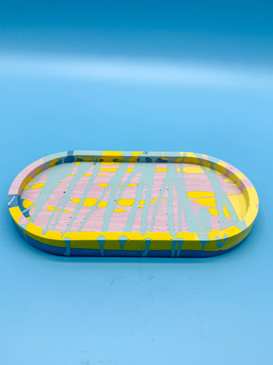 Ablage Oval Gelb Lila Blau Splash - Handgemacht Designer Deko Schale