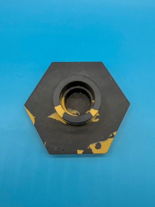 Handgemachte Jesmonite Kerzenständer Hexagon - Schwarz und Gelb
