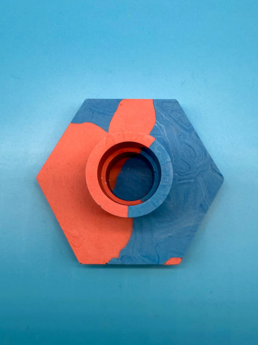 Handgemachte Jesmonite Kerzenständer Hexagon - Knalliges Rot und Blau