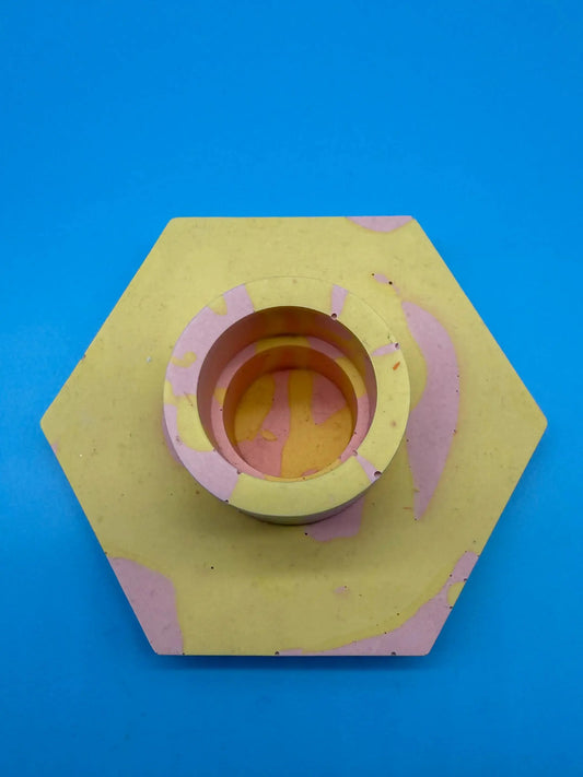 Handgemachte Jesmonite Kerzenständer Hexagon - Pfirsich und Gelb