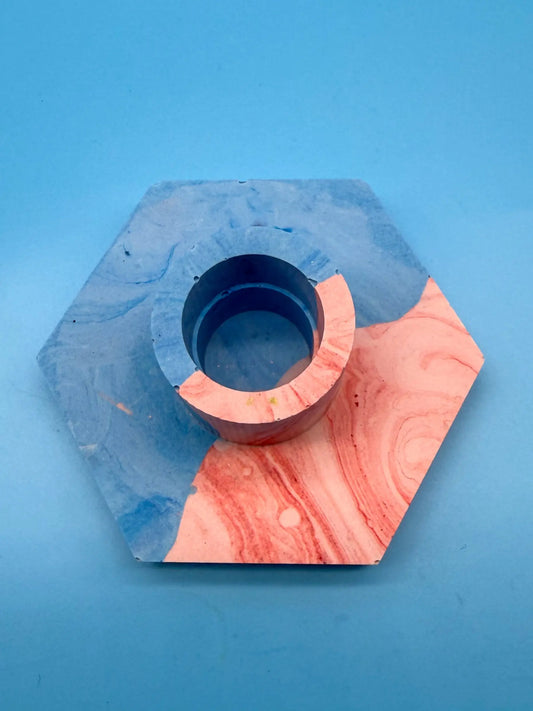 Handgemachte Jesmonite Kerzenständer Hexagon - Marmoriertes Rot und Blau