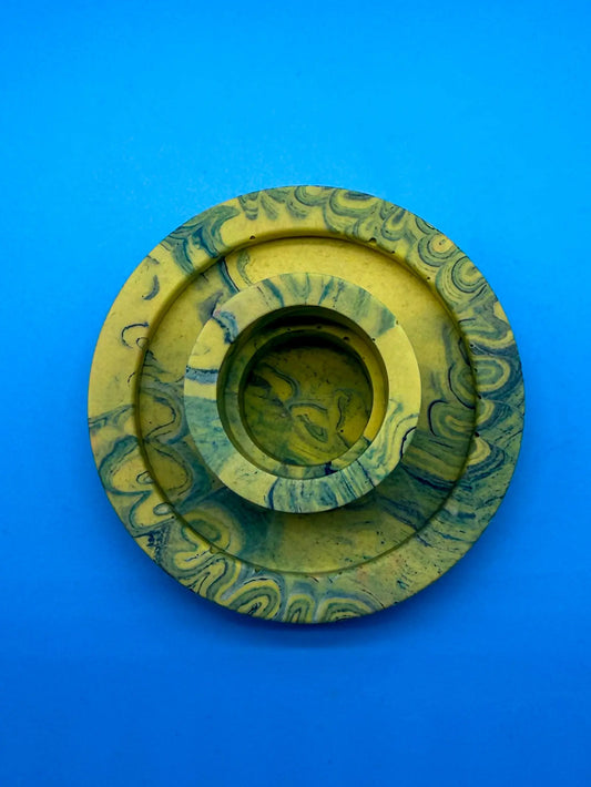 Jesmonite Kerzenständer Rund Gelb Grün Marmoriert - Handgemacht Designer Deko