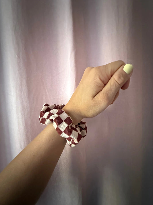 Kariertes Scrunchie Bordeauxrot - Eleganter Haargummi im Karo-Muster